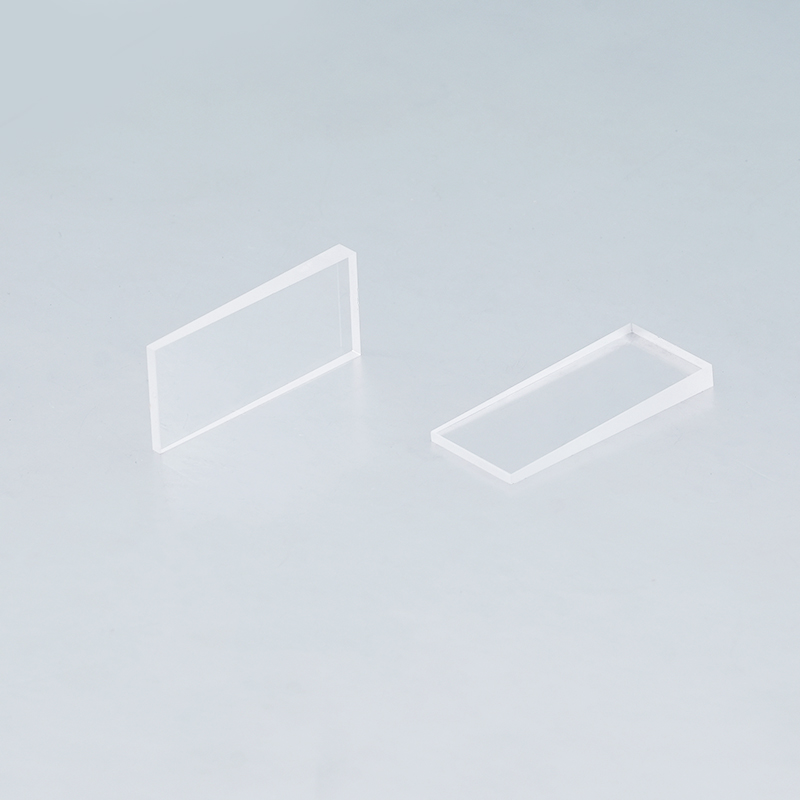 常用于将入射光束按一定的偏转角偏转到指定的方向。当成对使用时,通过两个光楔的相对旋转,出射光束可定位于一个以入射光束为轴线的角锥体内任意方向。熔融石英楔角片的制造需要精密的加工和抛光工艺,以确保其表面质量和光学性能。通常采用切割、研磨、抛光等加工步骤,以获得所需的形状和精度。同时,为了提高透射率和抗反射性能,通常需要进行镀膜处理。